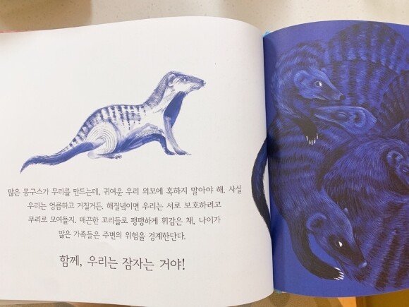 귀여워보이는 몽구스는 사실은 엉큼하고 거칠다고 하네요. 동물들에 대해 몰랐던 사실을 배워가는 즐거움이 큰 책입니다.