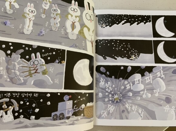 달가루라는 제목으로 알 수 있듯 이 책은 달에 사는 토끼가 달가루를 만드는 이야기에요.