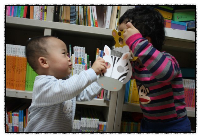 아이와 가면 놀이를 하면서 동물의 울음소리를 따라서 소리를 내보고