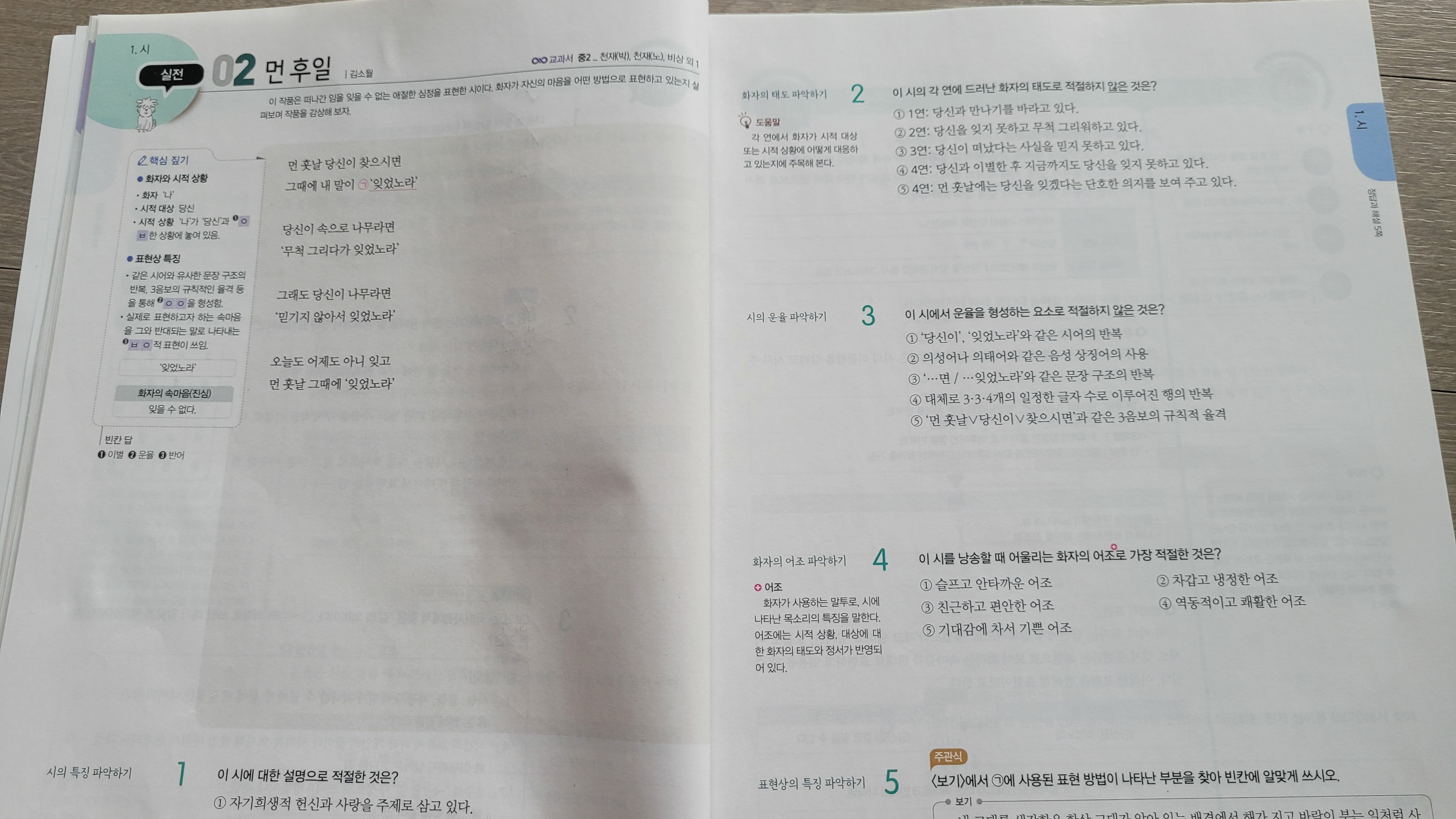 아이랑 수많은 중학교 문제를 접근하고 있지만, 문학 독해력 문제는 처음 접근해보는데