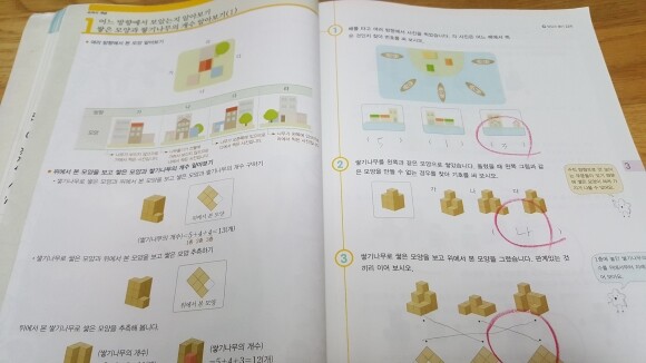 '1. 어느 방향에서 보았는지 알아보기- 쌓은 모양과 쌓기나무의