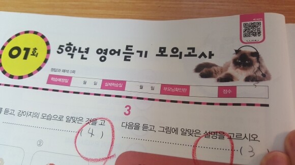 6학년 린이는 작년까지 학교에서 영어시험을 봤었어요.