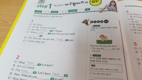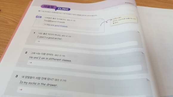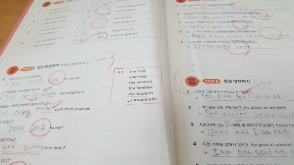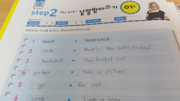 빈칸을 채워가며 'step2. 영작훈련'을 하기도 해요.