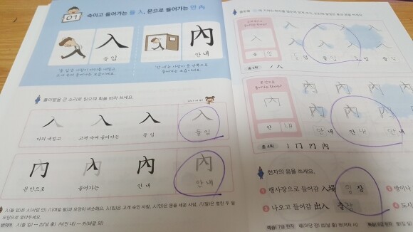 1일차. 들 入, 안 內 두글자를 배워봅니다.