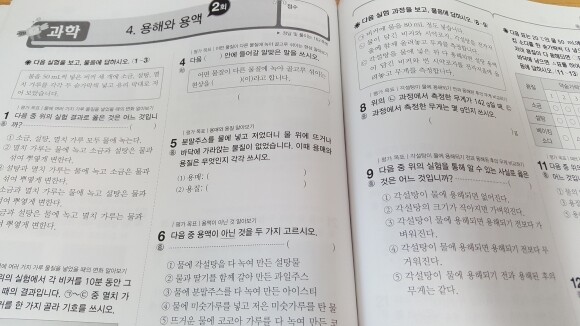과학 문제집 일부에요.