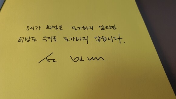 우리가 희망을 포기하지 않으면 희망도 우리를 포기하지 않습니다.