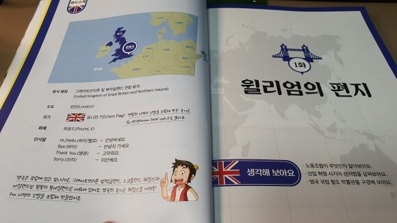 '영국은 유럽에 있는 섬나라로, 그레이트브리튼 섬(잉글랜드, 스코틀랜드, 웨일스)과