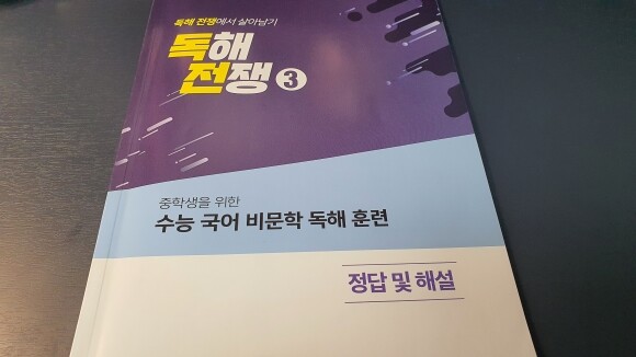 중2가 되는데 한 단계 위인 <독해 전쟁 ③>을 풀 수 있었어요.