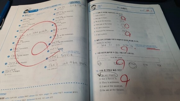 대신, 굉장히 많은 교재로 연습을 했어요.