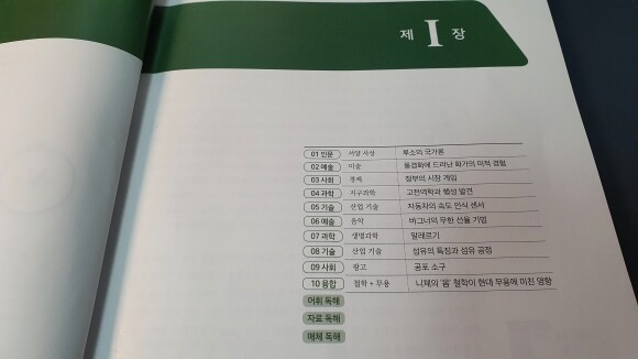 인문, 예술, 사회, 과학, 기술, 예술, 융합 등등 열 개의 지문과 문제로 구성되어 있고,