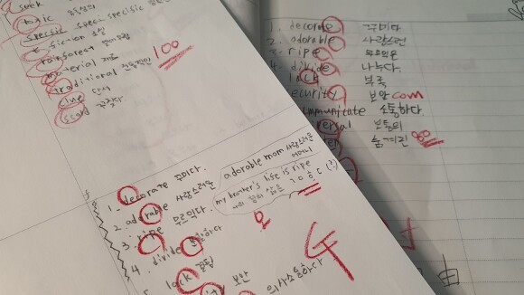 둘이 매일 같은 단어를 외우고, 시험까지 보고 있어요.