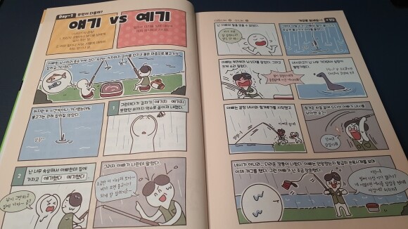 두 페이지에 '얘기'와 '예기'의 차이를 만화로 설명을 해주고 있어요!
