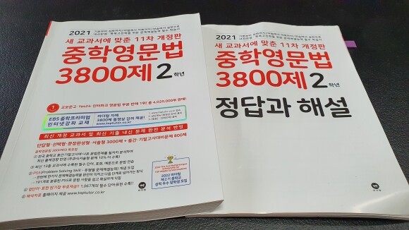 2021년 11차 개정판 <중학영문법 3800제>으로 공부 중이에요.