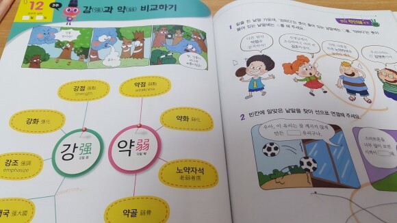 우선, 2컷만화로 오늘 배울 한자를 맛보기로 보여줍니다.