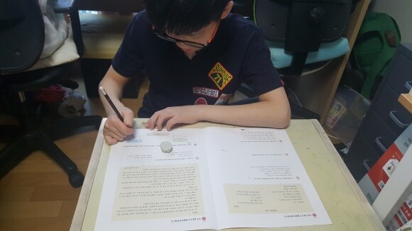 매일 다 풀어놓고 제게 채점해달라고 건네면서 하는 말이