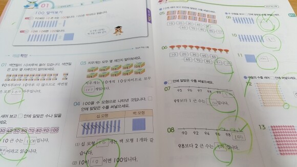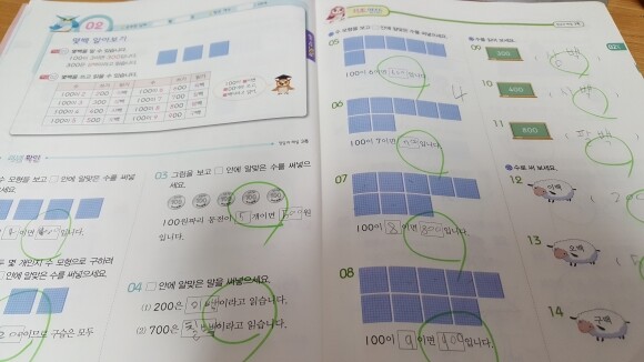 스스로 2학년 1학기 초등수학을 하고 있습니다.
