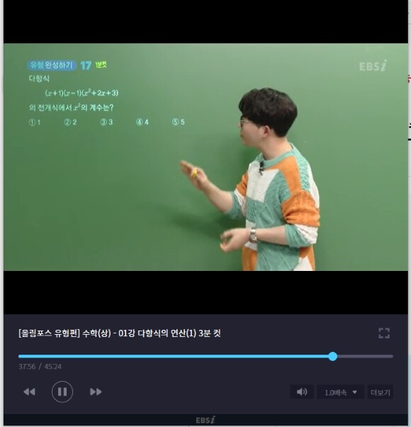 강의 중에 제가 검색한 해당 문항 풀이로 영상이 이어져 재생되더라고요.
