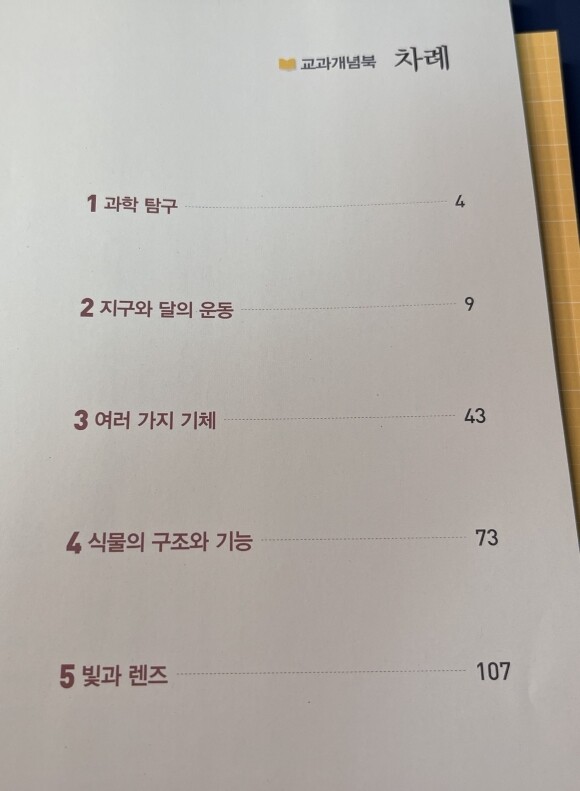 과학자처럼 탐구하기, 지구와 달의 운동, 여러 가지 기체, 식물의 구조와 가능, 빛과 렌즈