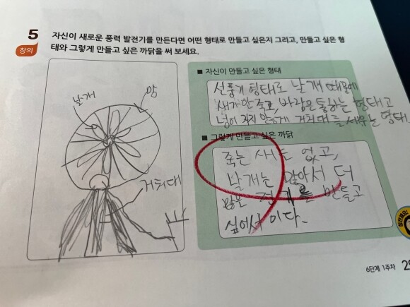 아이에게 이제부터는 요오기에 답을 적으라고 일러두었어요.