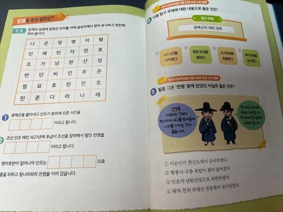 중2인 둘째, 역사에 아주 약한 아이가 초5인 막내가 '병자호란'을 아는 사실에 놀라더군요.