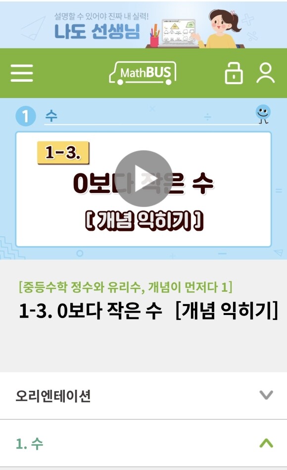 자연수와 음의 정수를 아주 천천히 하나하나 쉽게 설명을 해줍니다.