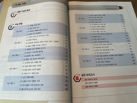 마지막은 실전 모의고사로 실제 수능에 가까운 문제를 연습해 볼 수가 있어요.