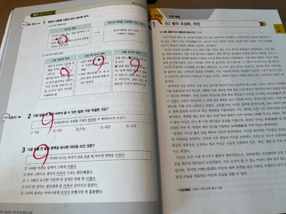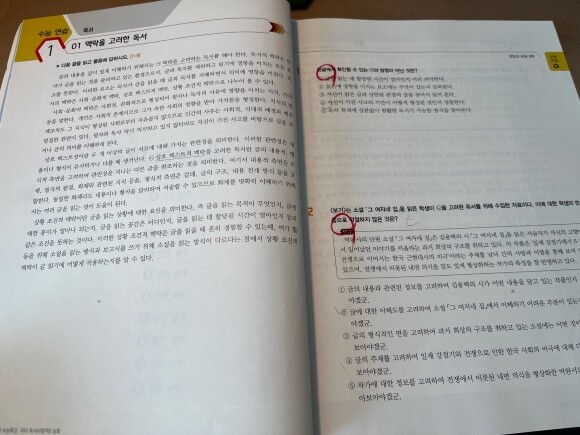 중등 독해를 거의 마치고 고등 독해를 하고 있었어요.
