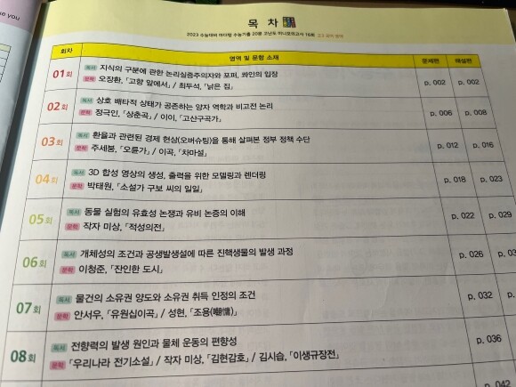 그리고 이 지문들은 정답률이 가장 낮은 독서, 문학 지문들을 체계적으로 배치했다고 해요.