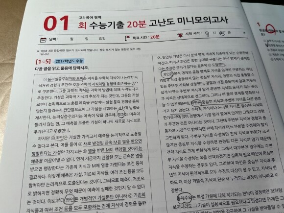 다음 학기 수학 예습과 함께 수능에 출제되었던 국어 지문 공부를 하기 시작했어요.