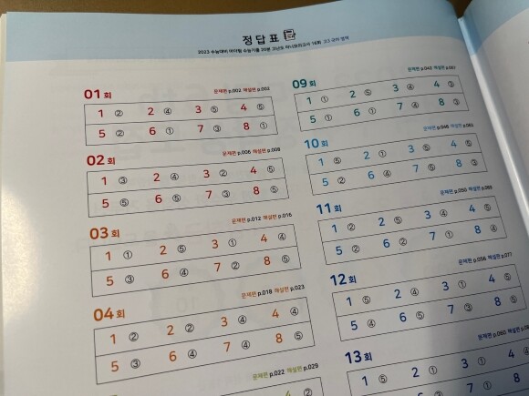 문제집 뒤편에 보기 편하게 <정답표>가 실려 있어요.