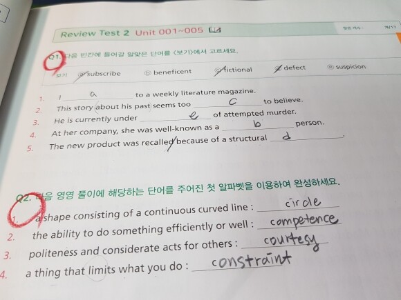 제시된 영단어에 대한 한글 뜻을 영단어를 쓰면서 제대로 외웠는지 확인해 봐요.