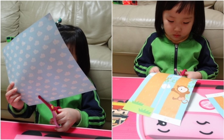 선을 긋기도 하고, 가위로 기다랗게 오리며 만들어요.
