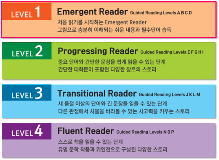 아이 스스로 책을 읽고 폭넓은 이해력과 어휘를 습득할 수 있도록 만들어진 리더스 시리즈