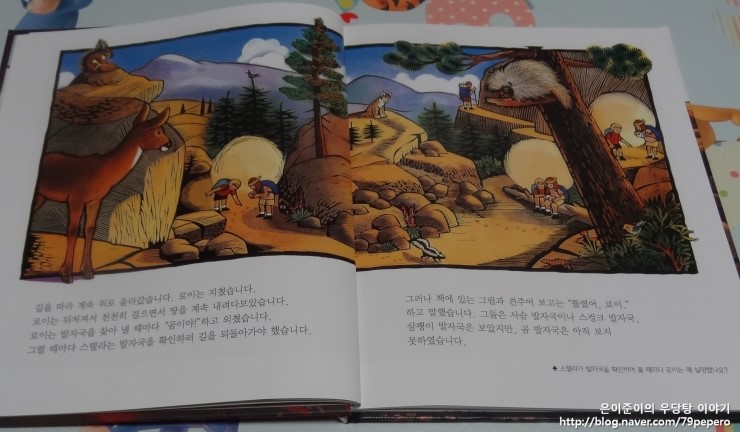 그리고 책을 열심히 보며 로이, 스텔라와 함께 열심히 동물 발자국을 찾아 봅니다.