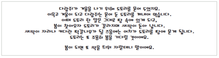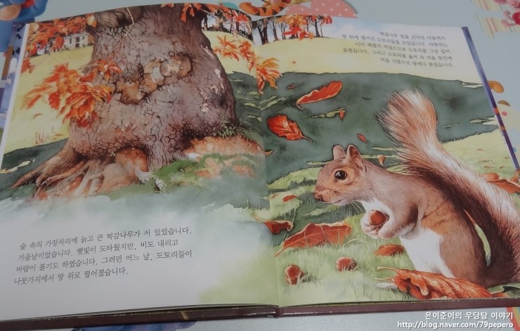 떡갈나무 밑을 지나던 다람쥐가 땅 위에 떨어진 도토리들을 보았습니다.