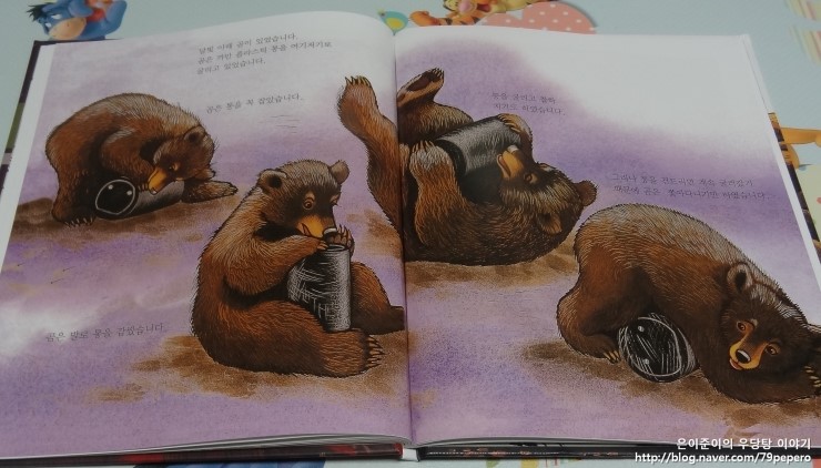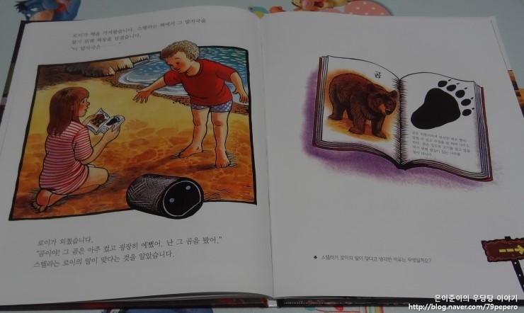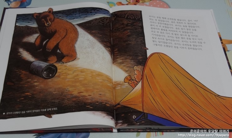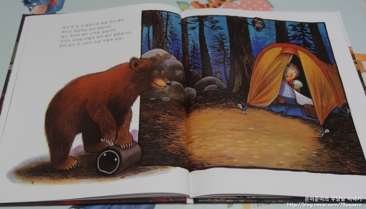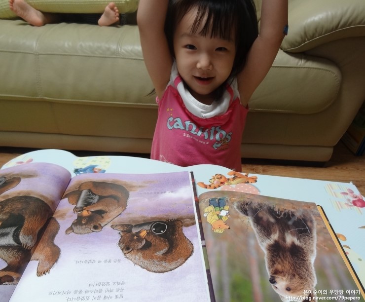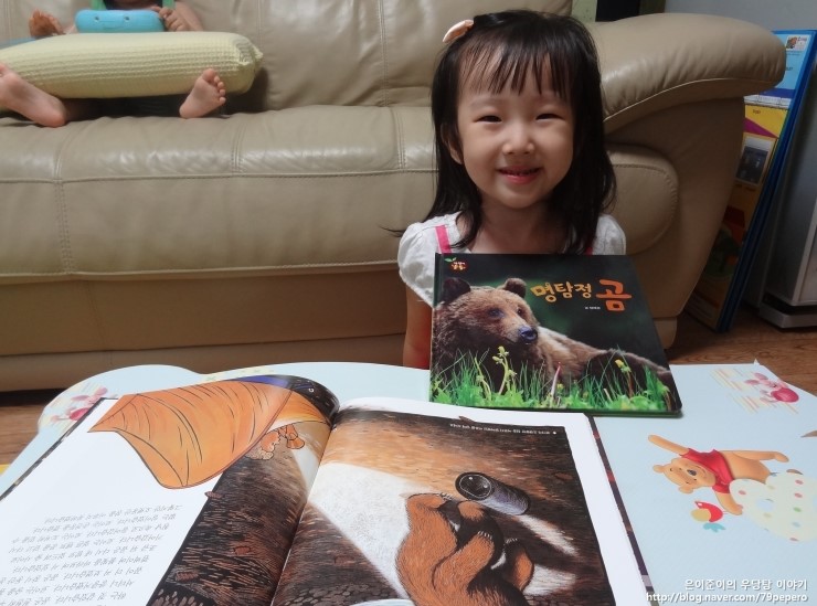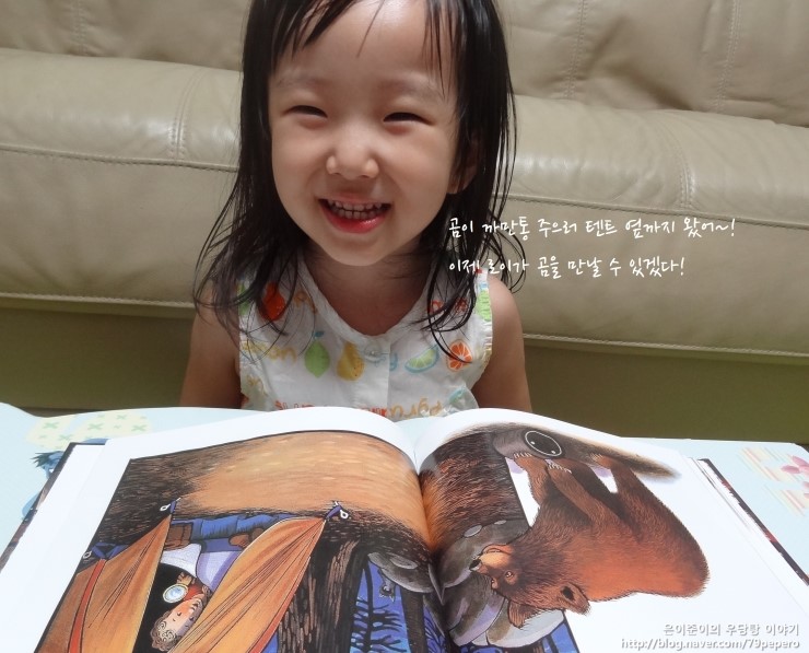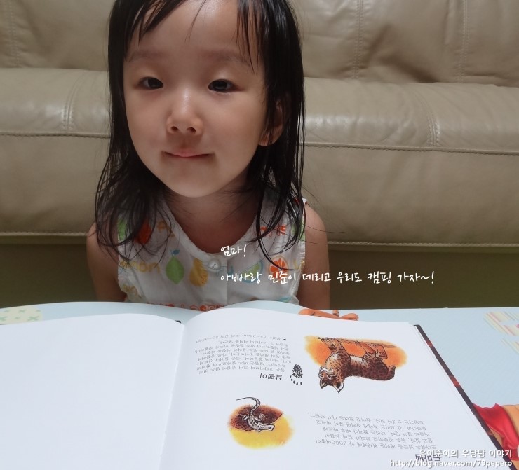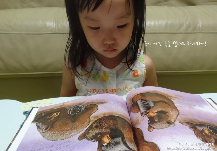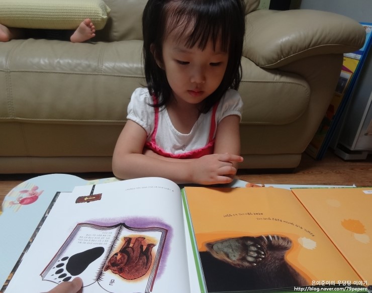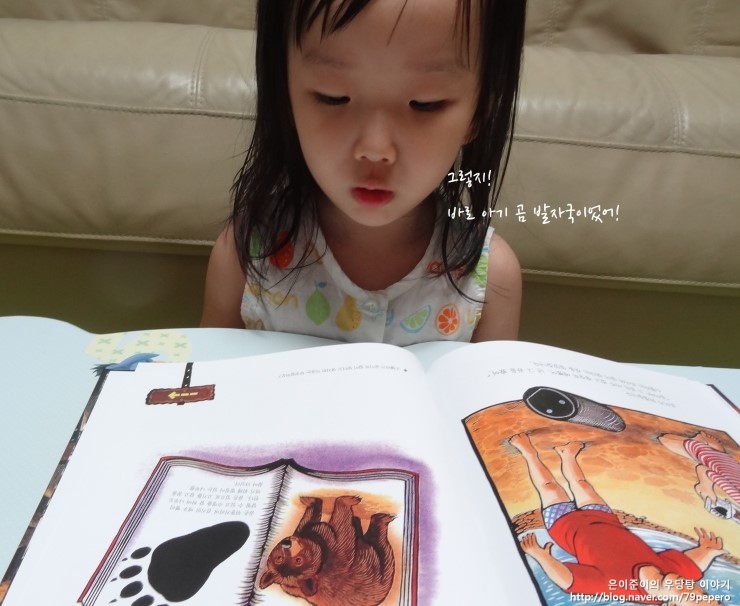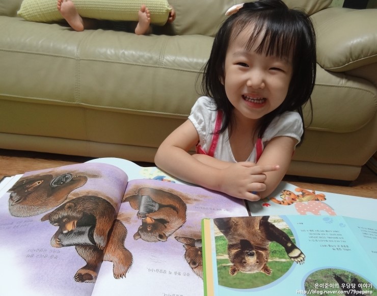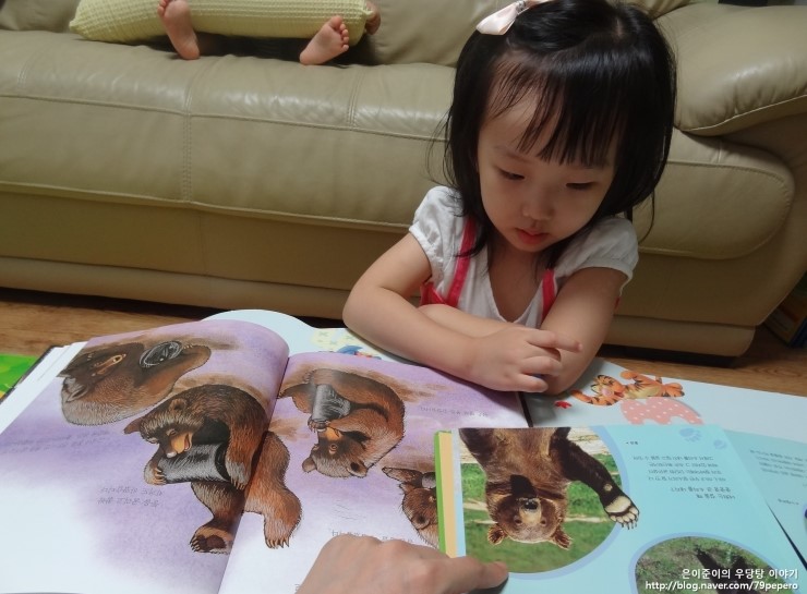 '숲속의 캠핑'을 보고 나더니 쪼르르 달려가서 '곰'에 대한 자연관찰 책을 들고 옵니다.