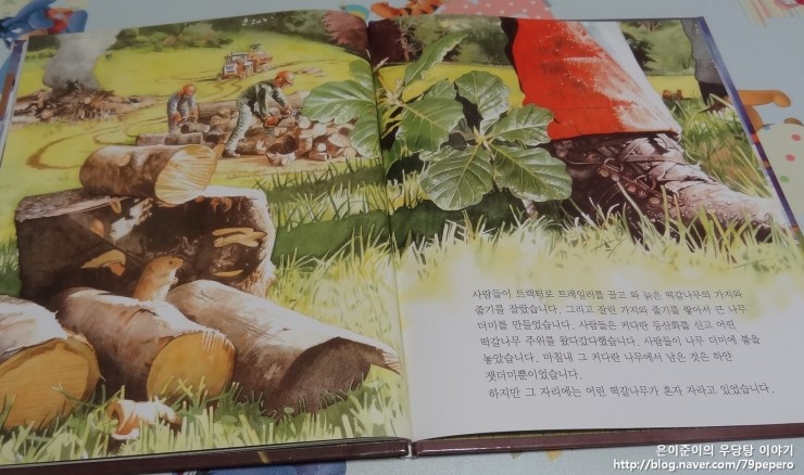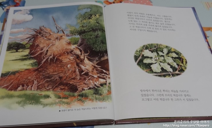 우지끈! 커다란 소리와 함께 늙은 떡갈나무는 땅 위로 쓰러졌습니다.