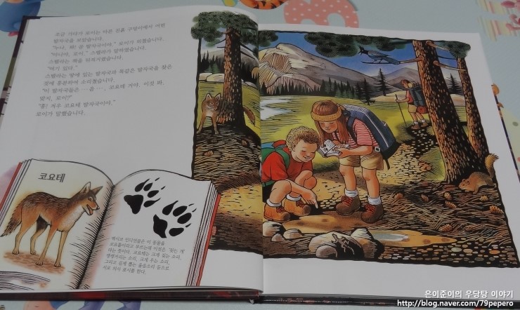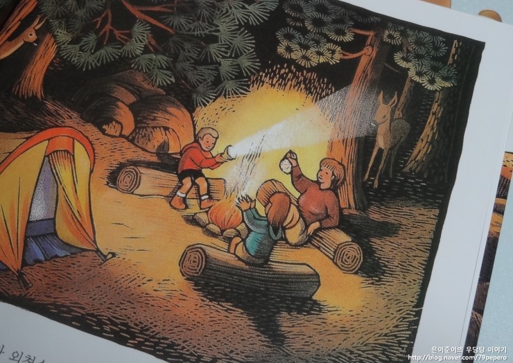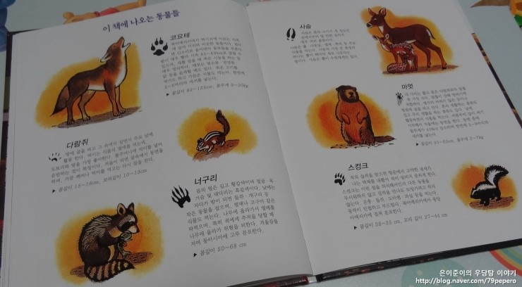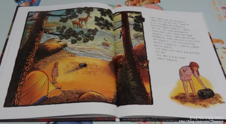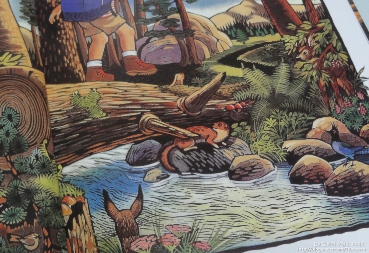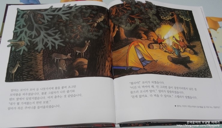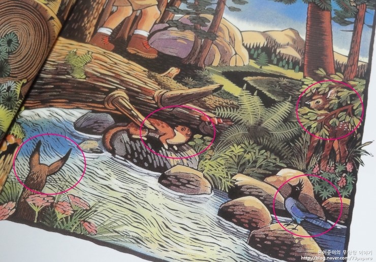 '숲속의 캠핑'에서 동물들에 대한 그림이 얼마나 잘 표현되어있는지 알 수 있어요.