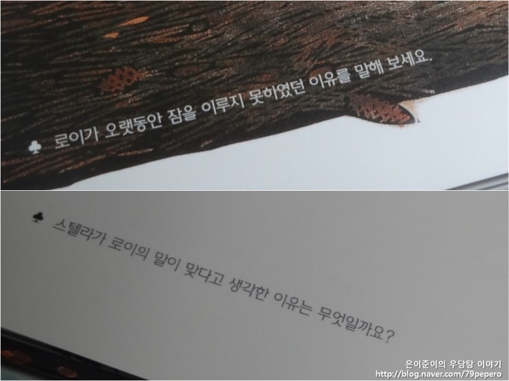 그리고 로이가 밤이 늦도록 왜 잠을 이루지 못했는지 엄마와 이야기를 나누어 봅니다.