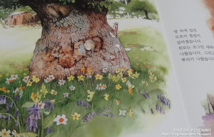 들판에는 카다란 떡갈나무가 쓰러져 있었습니다.