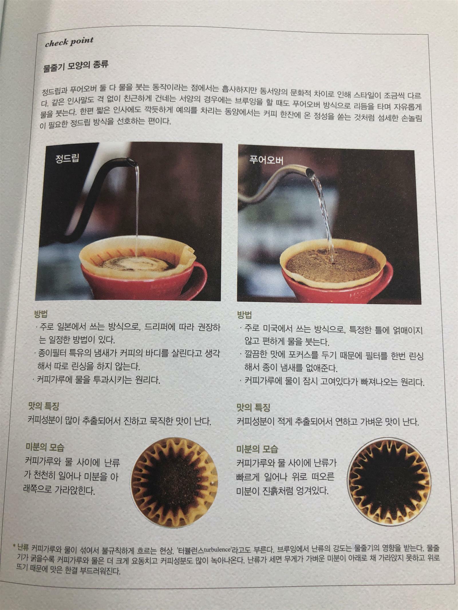 보니 커피의 향과 산미를 즐기는 미국에서는 하리오가, 깊고 진한 커피 맛을 좋아하는 일본에서는 칼리타가 높은 인기를 누리고있다. 그래서 라이트 로스팅된 원두는 하리오가, 다크 로스팅된 원두는 칼리타가 잘 어울린다는 공식이 생기기도 했는데, 이 점을염두에 두고 추출도구를 선택하면 보다 만족스러운 결과를 얻을 수 있다. - P69