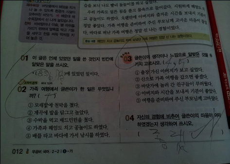아침 시간을 이용해 우공비 국어를 하고 갔는데요...