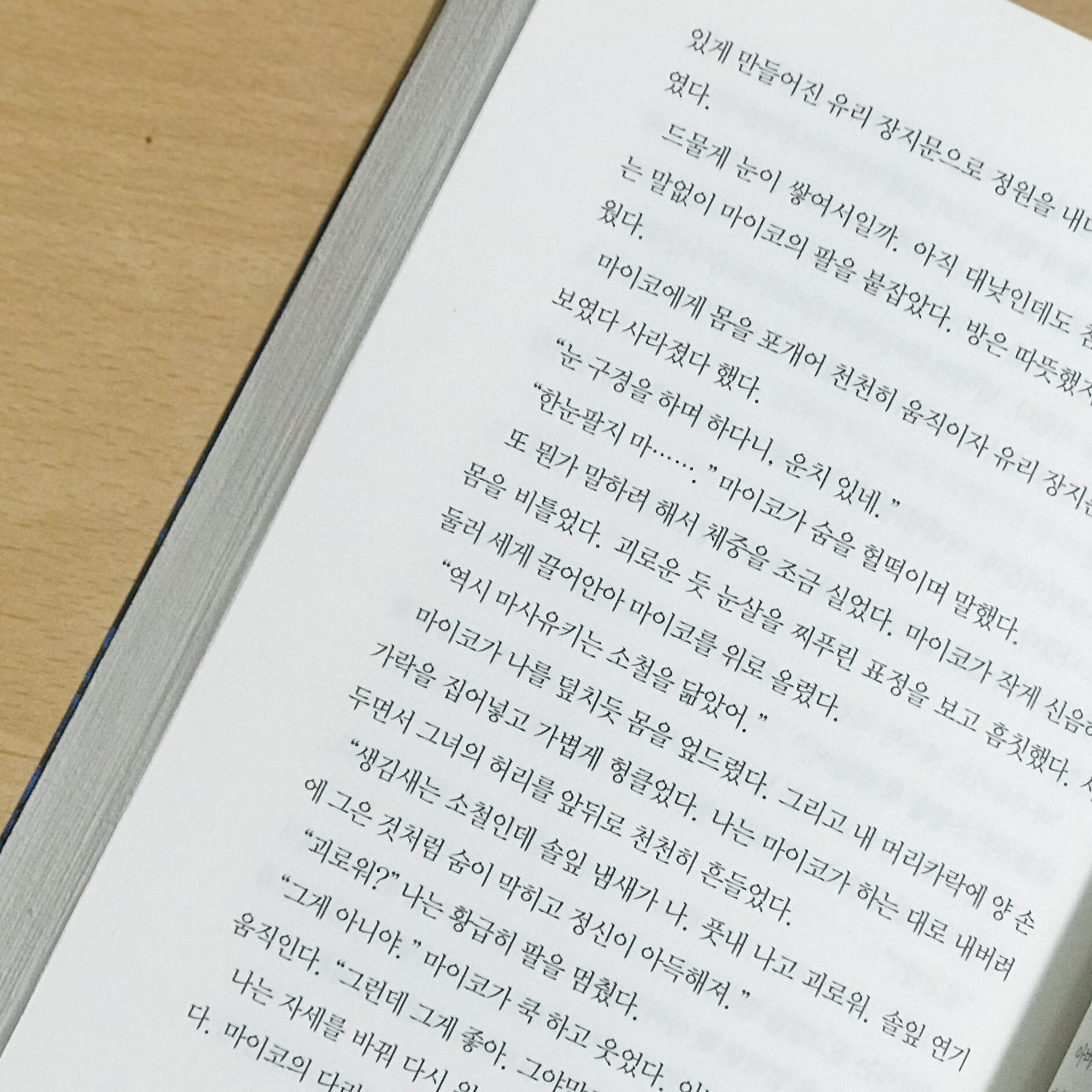 나는 주로 마사유키의 입장에서 소설을 읽으려 했다. 마사유키는 머리가 새치로 인해 이미 하얗게 변해버린 30대 청년이다. 나는 예전에 중국에서 화제였던 눈송이 소년의 이미지를 떠올리며 그에게 이입했다. 사진처럼 눈을 뚫고 학교에 가느라 머리가 눈송이처럼 변해버린 아이였는데, 왜인지 모르게 마사유키와 비슷하게 느껴졌다.