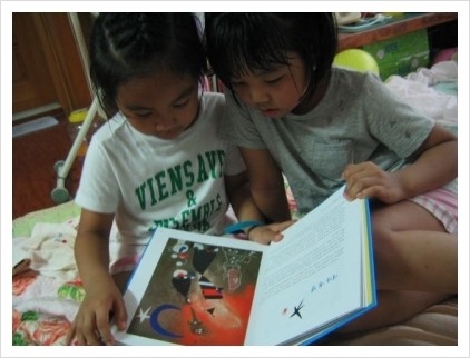 같이 책을 보면서 도란 도란 이야기를 나누면서 그림을 보는 아이들의 표정이 사뭇 진지하더군요.
