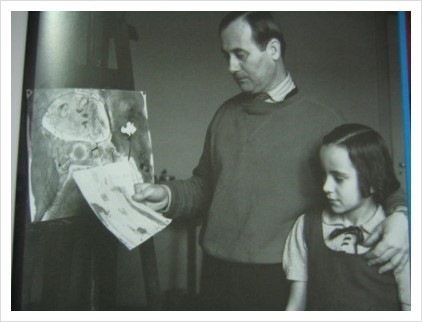 사진은 작업실에서 딸 돌로레스와 함께 있는 미로랍니다. 다정한 부녀의 모습이네요.