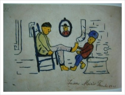 미로가 여덟살때 그린 티눈을 치료하는 박사님이라는 그림이래요. 미로는 어떤 화가였을까요?
