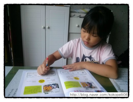 첨 한자 쓰는거라 좀 어렵다고 하면서도 기특하게 잘 따라 쓰네요.