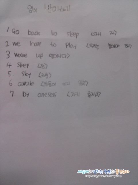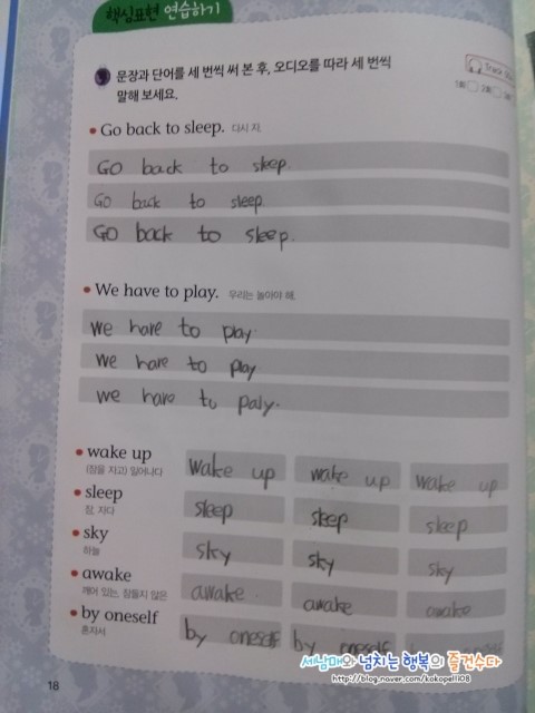 오디오를 따라 세번씩 말해보고 써보기 했는데 좀 빨라서 오디오 끝난 다음에 차근 차근 썼답니다.
