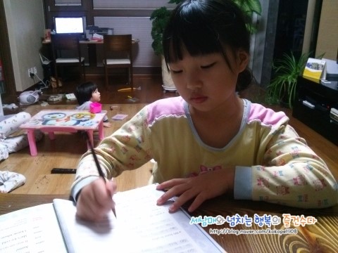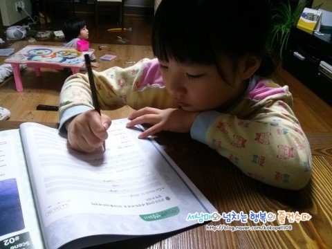 오빠랑 동생은 놀기 바쁜데도 혼자 받아쓰기 까지 하고 누가 시키지도 않는데 이러고