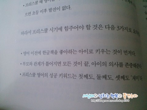 많이 놀고 한글책을 많이 읽으라고 조언해 주는 잠수네에 감동*^^*